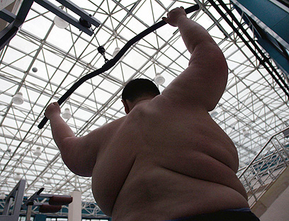 צללית של אזרח סיני כבד משקל המתאמן בחדר כושר (צילום: גטי אימג')