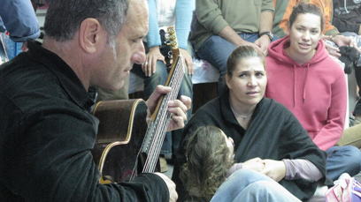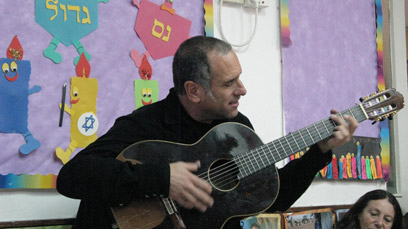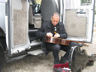 ברוזה מחליף מיתרים בגיטרה בתנאי שטח (צילומים: מרב יודילוביץ')