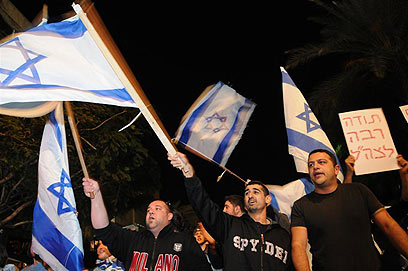 דגלי ישראל בהפגנה בת"א. 4 פעילי ימין נעצרו (צילום: ירון ברנר)