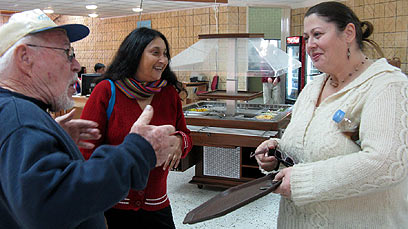 הקבוצה נכנסת לחדר האוכל. אנג'לה שטיינגרט זוכה למנות גדושות של אהבה. "גברתי, אני רוצה לאמור לך שאת גדולה", אומר אחד מחברי הקיבוץ. היא מודה לה. אחד אחרי השני ניגשים, לוחצים את היד, אומרים: "תודה". אנחנו יושבים לאכול.
