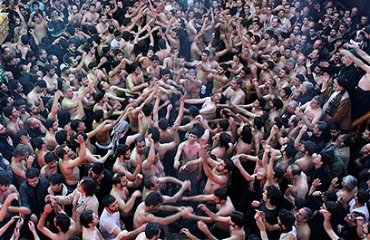 מוסלמים שיעים מכים את עצמם באיראן, היום (צילום: AP)