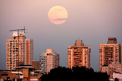 הירח הגדול שנראה לפני חודש, מעל גגות גבעתיים (צילום: אבי קדם)