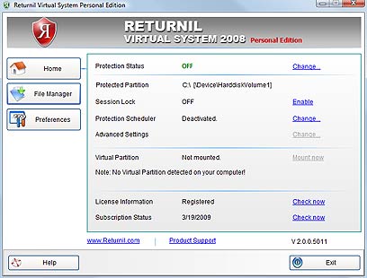 נשמע קצת דמיוני, אבל זה עובד: קובץ שנמחק מהמחשב שב והופיע לאחר הפעלה מחדש, ואילו תמונה שנשמרה באחת התיקיות נעלמה לאחר האתחול. אבל ההגנה של Returnil נרחבת יותר - גם תוכנה שהוסרה מהמחשב באמצעות "הוסף/הסר תוכנה" בלוח הבקרה חזרה למקומה לאחר הפעלה מחדש של המחשב, וחשוב עוד יותר, תוכנה שהותקנה במחשב בזמן שReturnil- עבדה, נעלמה כלא הייתה לאחר כיבוי והדלקה.