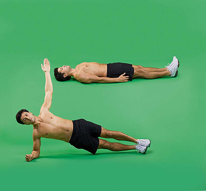 » התהפך על הצד תוך החזקת הגוף למעלה כשזרוע אחת כפופה ומקבילה לרצפה והשנייה ישרה לאורך הגוף. הישאר במצב הזה 30־60 שניות.