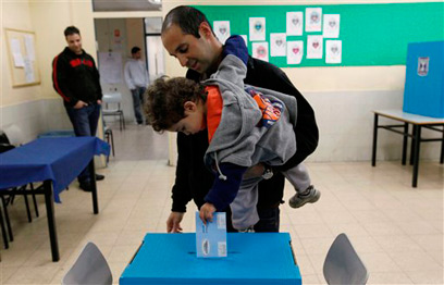 אב ובנו מצביעים בקלפי (צילום: AP)