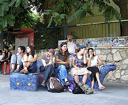 תושבי השכונה על "ספה" בסלון השכונתי שיצרו חברי הקבוצה.