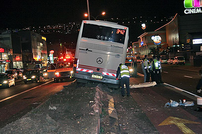 האוטובוס עלה על אי תנועה (צילום: שי וקנין)
