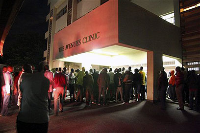 אזרחים מודאגים וסקרנים בכניסה לביה"ח שבו מטופל צ'נגיראי (צילום: AP)