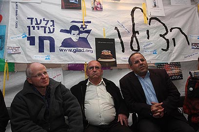 למאהל המחאה של משפחת שליט מול מעון ראש הממשלה, הגיעו בני משפחתו של החייל הנעדר מג'די חלבי וחבריו של הנווט הנעדר. נזמי חלבי: מבקשים לחזק כדי להתחזק. אחד מחבריו של ארד: סמכנו על הממונים שיעשו את מה שצריך וכשלנו
