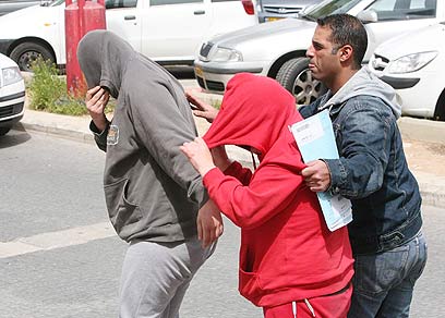 שניים מהחשודים בבית המשפט בירושלים, היום (צילום: גיל יוחנן)