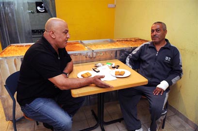 מחאג'נה וחאמד בקפה "ממתקי אבו עלי" (צילום: ג'ורג' גינסברג)