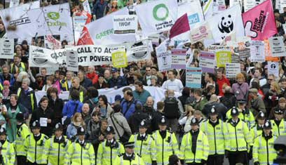 המפגינים יצאו מהייד פארק וצעדו ברחובות לונדון. הם דרשו לשמור על מקומות העבודה, להפחית את פליטת מזהמים ולהגביר את הפיקוח על המגזר הפיננסי.