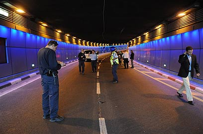 זירת התאונה במנהרה בתל-אביב (צילום: ירון ברנר)