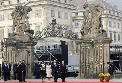 אובמה ורעייתו, הבוקר בפראג. הניסוי האפיל על הנאום (צילום: רויטרס)