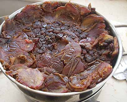 - טוחנים תמרים, צימוקים, אגוזי מלך ואגוזי לוז במטחנת בשר או במעבד מזון.