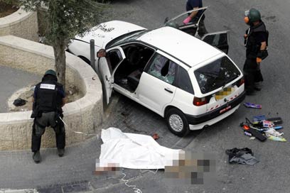 הרכב הדורס במקום הפיגוע (צילום: דודי ועקנין)