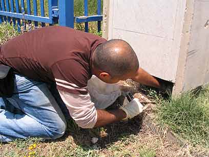 בהישג ידם של ילדים. שוטר ליד מסתור הסמים (צילום באדיבות המשטרה)