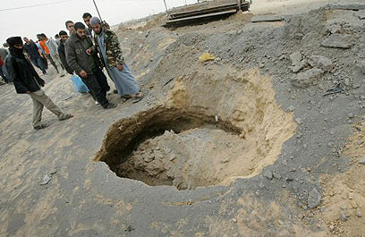 בור שנפער בעקבות התקיפה (צילום: AFP)