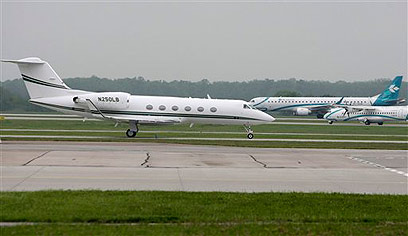 מטוסו של דמיאניוק לאחר הנחיתה בנמל התעופה במינכן (צילום: AP)