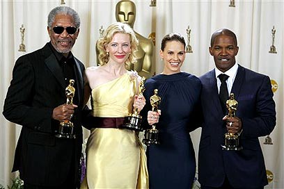 וגם כשנדמה שכולם מסביב לובשים רק שחור ועושים קצת נאחס, למרות שחלקם עדיף שילבשו שחור תמיד, בלאנשט יודעת איך להביא איתה משהו אחר ולשחק אותה עם צבע שמאיר את הכל סביבה ואפילו גורם לאוסקר להיות חיוור. שמלות בהירות לא מתאימות בדרך כלל לנשים בעלות גוון עור בהיר וכבר הוכחנו את זה רבות, אבל אצל בלאנשט הבעיה הזאת לא קיימת. למרות העור החיוור והשיער הצהוב, ואולי בגלל שני אלו, השמלה שלה עושה עבודה מוצלחת ביותר, ועל הגזרה אין צורך להוסיף. בקיצור, קרן אור של שמש שמעלה חיוך. שיהיה הרבה מזל טוב.