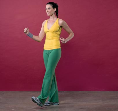 4. נחיתה מושלמת. עם כל צעד הניחו קודם את העקב על הקרקע כשאתם שומרים על רגל ישרה ואצבעות כף הרגל מופנות כלפי מעלה וגלגלו לעבר הכריות, גם אם אתם במעלה ההר. כך האימפקט כתוצאה מנעיצת העקב בקרקע עובר מרצועות הברך אל שרירי הירך והשוק.