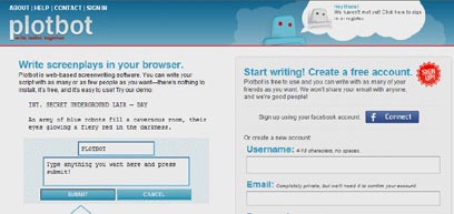Plotbot (“מנוע עלילה", בתרגום חופשי) הוא שירות בגירסת בטא, שפועל דרך הדפדפן ומאפשר לקבוצה של אנשים לכתוב תסריטים ביחד. נכון שכתיבת מסמכי טקסט במשותף זו תכונה שכבר קיימת בשירותי האופיס של גוגל, אבל ב-PlotBot הפורמט מתאים במיוחד לכתיבת תסריט. כדאי לקרוא גם מדריך מקוצר ב-Wired שמסביר בנקודות איך לכתוב את התסריט.