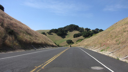 יצאתי לרכיבת יום בגבעות שסביב העיירה. ואיזה נוף... חמוקי בוטרו עגלגלים, וביניהם ערוות חורש כהה וכבישים מסתלסלים בינותיהם כמו שיר. שלמה על ההרלי דייווידסון הנוצץ שלו ואני על האופנוע הפחות-נוצץ, שזה אך קניתי. הלכנו לבדוק שהכל עובד לטובתנו. יצאתי עם מינימום הכרחי. טרם רכשתי מגפי רכיבה. אני מחכה להגיע למדינת אורגון בעוד יומיים. שם אין מיסוי על אופנועים וציודם (הבנתם את זה?) מה שיכול לחסוך כסף רב.