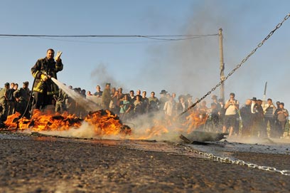 צמיגים בוערים בכביש 1 (צילום: גיא אסיאג)