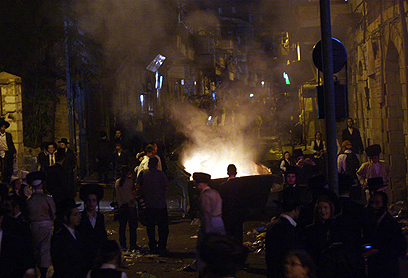 המפגינים הבעירו פחים (צילום: גיל יוחנן)