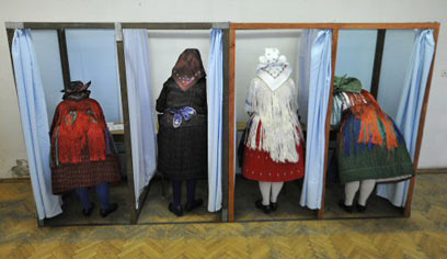 מצביעות בתחנת קלפי בהונגריה, היום (צילום: AFP)