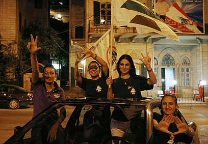 חגיגת בחירות בלבנון. פעילות פוליטיות בחוצות העיר (צילום: AFP)