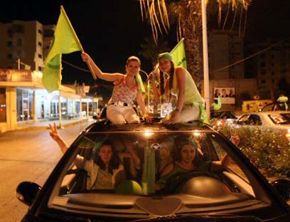 תומכי חיזבאללה חוגגים - עוד לפני היוודע ההפסד (צילום: AFP)
