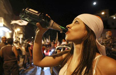 שיכורי ניצחון בביירות (צילום: AFP)