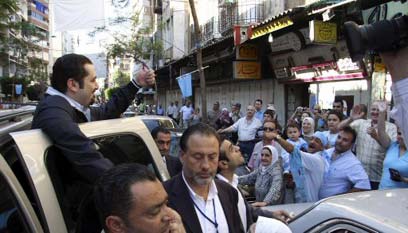 אל-חרירי יוצא להמונים. נאום ניצחון פייסני (צילום: רויטרס)