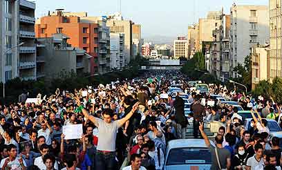 בניסיון לערער את יציבותה בדרכים שונות. מתוצאות הבחירות לנשיאות, שפורסמו ביום שבת, עולה כי הנשיא השמרן מחמוד אחמדי-נג'אד נבחר ברוב סוחף לכהונה שנייה. תומכיו של יריבו הפוליטי המתון, מיר-חוסיין מוסווי, סירבו להכיר בתוצאות ומאז מפגינים מדי יום בטהרן וערים אחרות ברחבי המדינה.