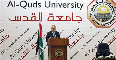 שבוע ויום לאחר נאום בר-אילן של בנימין נתניהו, התייצב הערב (יום ב') ראש הממשלה הפלסטיני, סלאם פיאד, מול סטודנטים באוניברסיטת אל-קודס באבו-דיס, כדי להגיב על דברי ראש ממשלת ישראל. הנאום זכה להתעלמות מופגנת של בכירי פתח, בהם אבו עלא, הנושא תפקיד בכיר במוסד האקדמי.