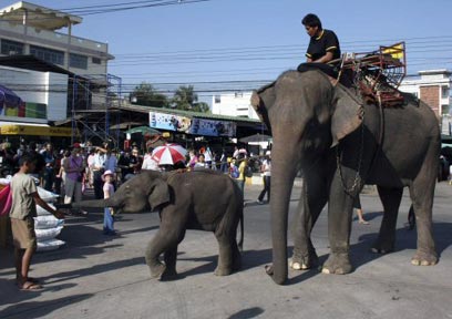 פילים בתאילנד. ניתן להאכילם בבננות וגם לרכוב עליהם (צילום: רויטרס)