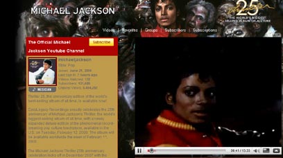 הערוץ של ג'קסון ביוטיוב לא ממש עודכן בחודשים האחרונים ונכון לעכשיו מקדם את ההוצאה המחודשת לאלבום Thriller, לרגל 25 שנים ליציאתו. הגולשים מנצלים את הבמה של התגובות לסרטונים להביע את אבלם וגעגועיהם.