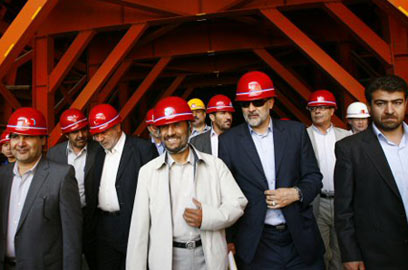 אחמדי-נג'אד מבקר באתר חפירת מנהרה ליד טהרן, היום (צילום: AFP)