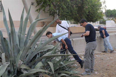 שוטרים מחפשים ממצאים בזירת הרצח (צילום: אבי רוקח)