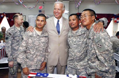 ביידן וחיילים אמריקנים בעיראק. נמנע מספקולציות (צילום: AFP)