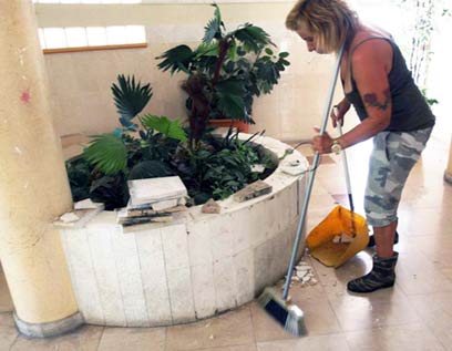 הבניין המרשים, ובו לובי מכובד, שוכן בשכונה יוקרתית. אתמול בשעות אחר הצהריים, נכנסו אלמונים לתוך הלובי ושברו את אחת האדניות לרסיסים. הדיירים החליטו שלא לוותר ולערב את משטרת ישראל בסיפור.