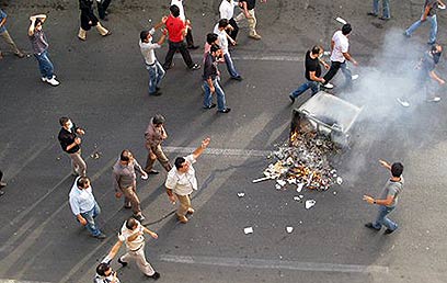 מפגינים ברחוב טהרן. עשור למהומות הסטודנטים (צילום: AFP)
