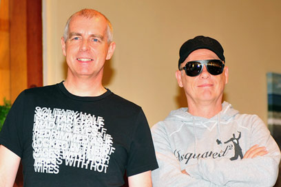 הם פה: ניל טננט (55) וכריס לואו (49) הבריטים, הלא הם ה"פט שופ בויז", נחתו היום (א') אחר הצהריים בישראל ומיד לאחר הגעתם התפנו למסיבת עיתונאים במלונם בתל-אביב. מחרתיים (ג') הם כבר יהיו על הבמה בביתן 1 שבגני התערוכה בתל-אביב, לשם הם יגיעו במסגרת סיבוב ההופעות האירופאי שלהם.