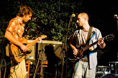 גבע אלון (משמאל) והמוזיקאי אייל דיין בג'אם בעין השופט (צילום: טל ארגוב)