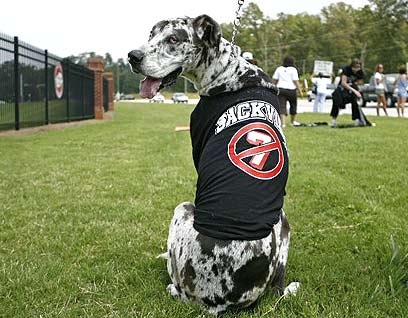 מפגין נגד מייקל ויק, אחרי חשיפת הפרשה בקיץ 2007. סולח? (AP)