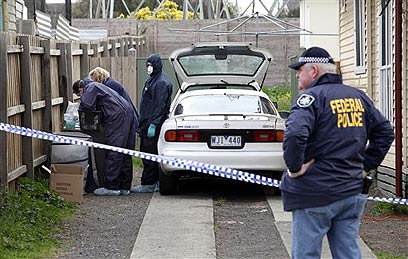שוטרים אוסטרלים ליד בית אחד החשודים (צילום: AP)