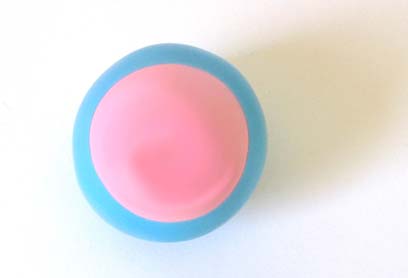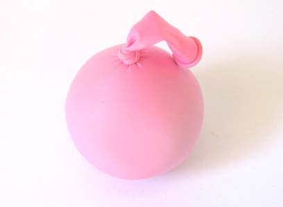 5. חותכים את צוואר הבלון הורוד מתחת לקשר, עוטפים את הכדור בבלון החתוך ומכסים את החור שנוצר בגזירה.