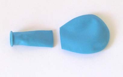 4. מנפחים בלון נוסף, כדי למתוח אותו ומוציאים את האוויר. גוזרים את צווארו של הבלון כמו בתמונה.