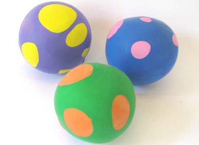 2. מכסים את הכדור בבלון השלישי, ומכינים אוסף צבעוני ומשמח של כדורים מנוקדים.